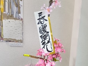 最後に理事長の書「春暖開花」の短冊を取り付けて完成しました。