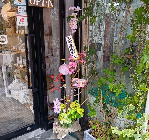 SUP JAPANESE TEA CAFEの入り口に、春らしい飾りが仲間入りしました。
