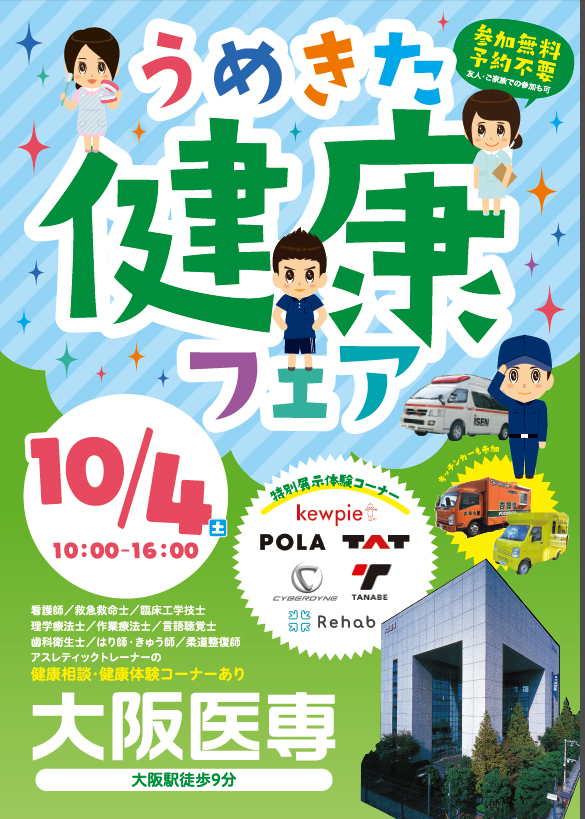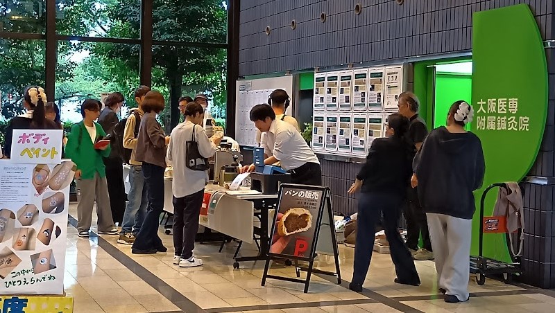 10月4日(火)大阪北区にある大阪医専総合校舎で『うめきた健康フェア』が開催されました。燦然会からは SUP JAPANESE TEA CAFEが出店、パンやクッキー、おはぎ、お弁当、ドリンク類を販売いたしました。当日は、雨天にもかかわらず、たくさんの人が来られ販売商品もほぼ完売いたしました。