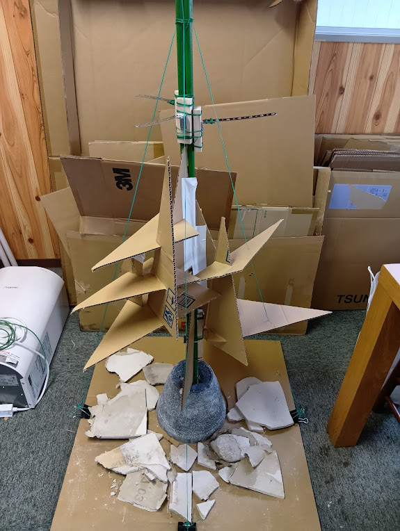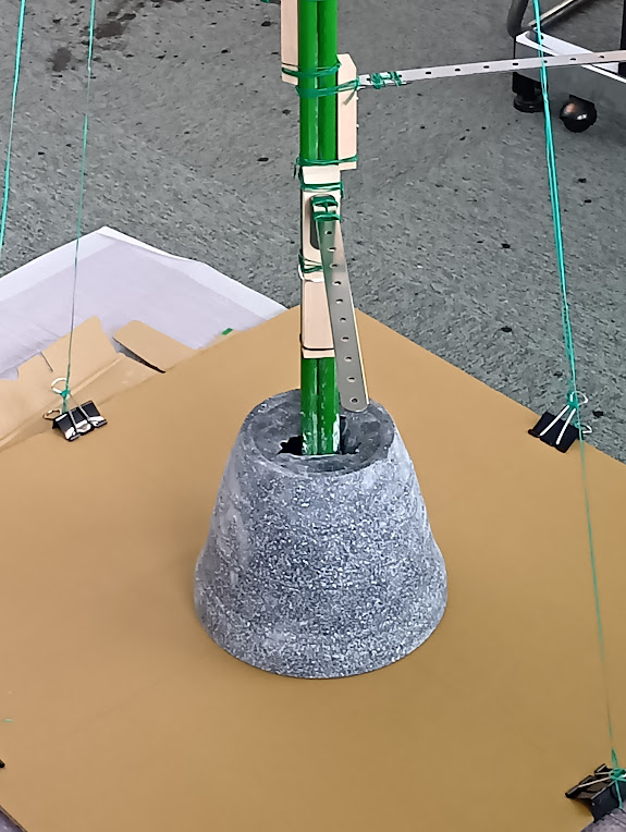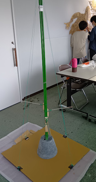 重ねて軸を作り、ポールを立てるために紙粘土で