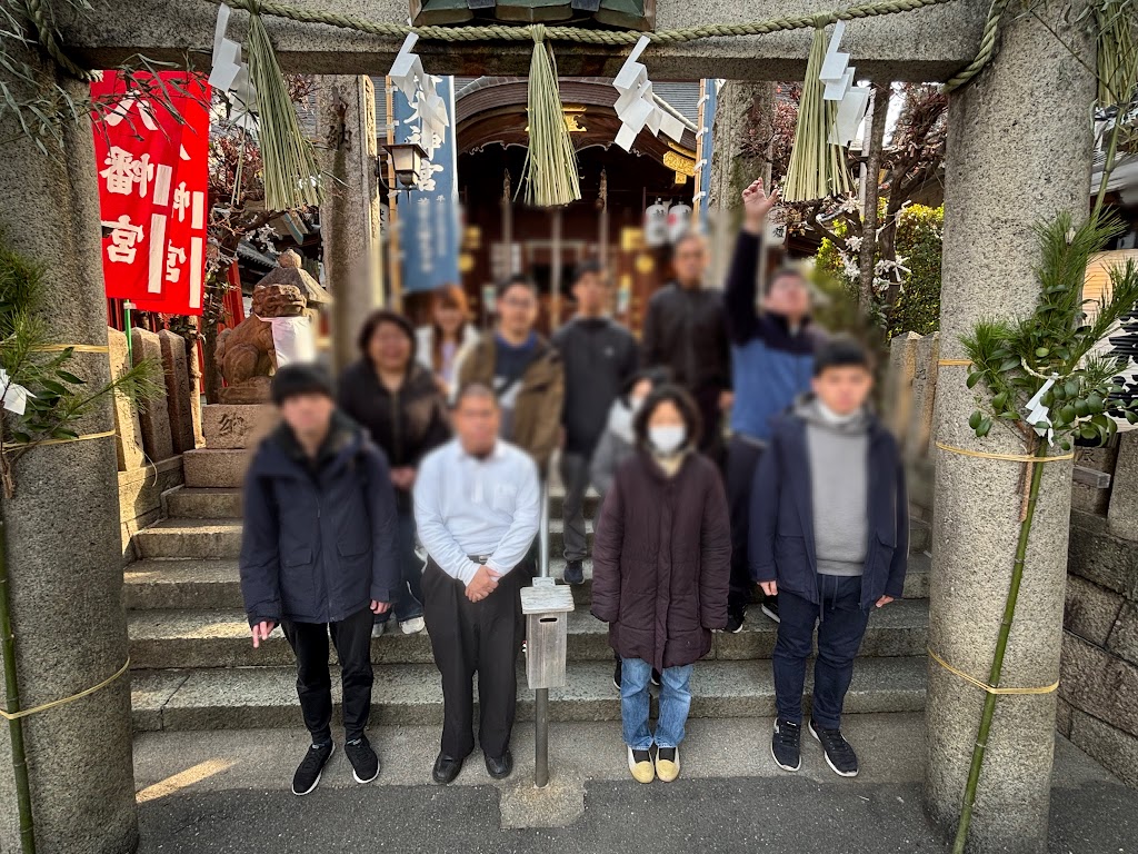 当日は天候にも恵まれ、少し冷たい空気の中でしたが、みんなで歩いて近くの神社へ向かいました。道中では、「お正月休みはどう過ごしましたか?」と会話も弾み、和やかな雰囲気でのスタートとなりました。